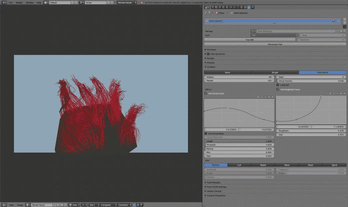 Haare können nun mit Objekten der Umgebung kollidieren, darüber hinaus lässt eine volumenbasierte Heuristik für Selbst-Kollisionen einzelne Haare untereinander interagieren. Die neue Simulation läuft auch dann stabil, wenn in einem Haar-System gleichzeitig sehr kurze und sehr lange Haare vorkommen oder falls die Haare sehr steif sind. Zudem lassen sich steife Haare jetzt besser virtuell kämmen, da ihre Grundform jetzt auch gebogen angelegt sein kann. Das ist etwa dann nützlich, wenn eine Frisur aussehen soll, als würde Gel oder Haarspray sie versteifen. Haare und Partikelsysteme ganz allgemein können jetzt in Blender von einem Objekt auf ein anderes kopiert werden, wobei auch Bearbeitungen wie zuvor erfolgtes Kämmen erhalten bleiben.