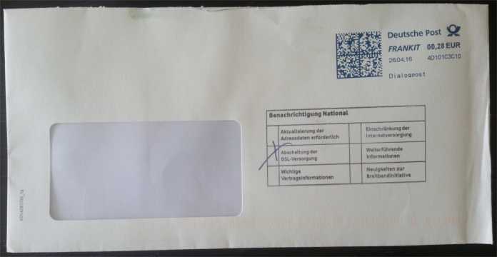 Die aggressive Machart mit einem auf amtlich getrimmten Stempel auf dem Umschlag ist gewollt, hier ist kein Marketing-Dienstleister übers Ziel hinausgeschossen. Ab Anfang März wurden zunächst 1000 Kunden angeschrieben, entweder mit dem Brief oder einer ebenfalls auf behördlich gemachten gelben Postkarte. Diesen Kunden will Vodafone tatsächlich kündigen. Wer auf die Wechselwerbung nicht reagiert oder sich gegen den Wechsel entschieden hat, dürfte die Kündigung ab etwa dem 20. April erhalten haben. Der DSL-Anschluss wird dann nach spätestens drei Monaten abgeschaltet.