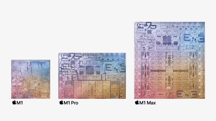 Die Webseite Andandtech schätzt anhand der gezeigten Die-Shots, dass der M1 Max stolze 432 mm² misst und der M1 Pro rund 246 mm². Die Schaubilder offenbaren, dass Apple bestehende CPU- und GPU-Blöcke hochskaliert und mit einem Fabric verbindet.