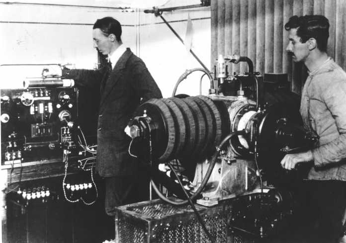 Die erste drahtlose Tonübertragung wird dem in Kanada geborenen Erfinder Reginald Fessenden zugeschrieben: Im Herbst 1900 soll er Sprache über eine Distanz von 1,6 Kilometern gesendet haben. Der von Fessenden dazu entwickelte Wechselstromgenerator war schon ein Schritt in die richtige Richtung. Die "Sendung" war aber noch stark gestört, das Ergebnis weder anhör- noch brauchbar. Zur Weihnacht 1906 sendet Fessenden mit einem Maschinen- sowie einem Löschfunkensender erneut – mit immerhin annehmbarem Ergebnis.