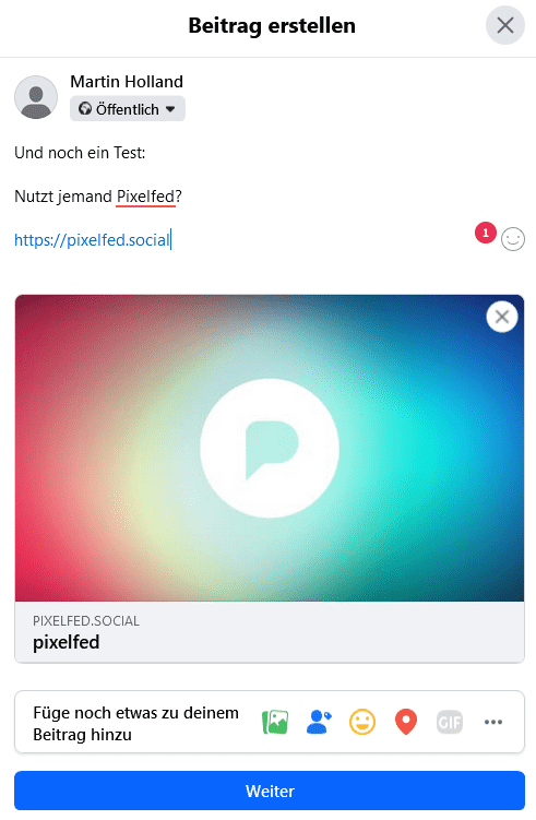 Facebook sperrt Links zu Pixelfed (5 Bilder)