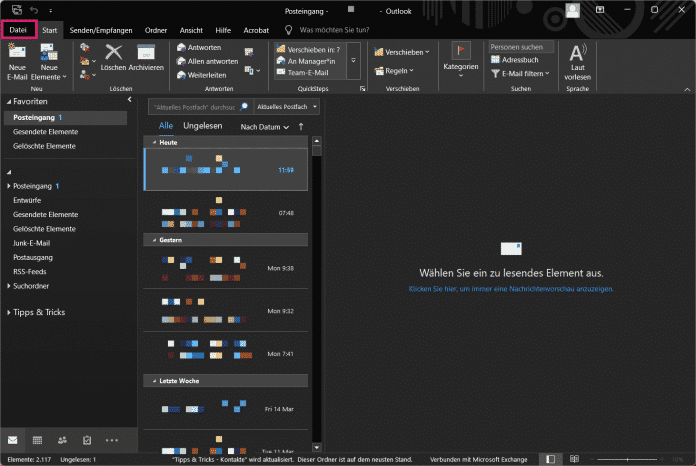 Outlook: Mails als nicht gelesen markiert lassen- Neu (3 Bilder)