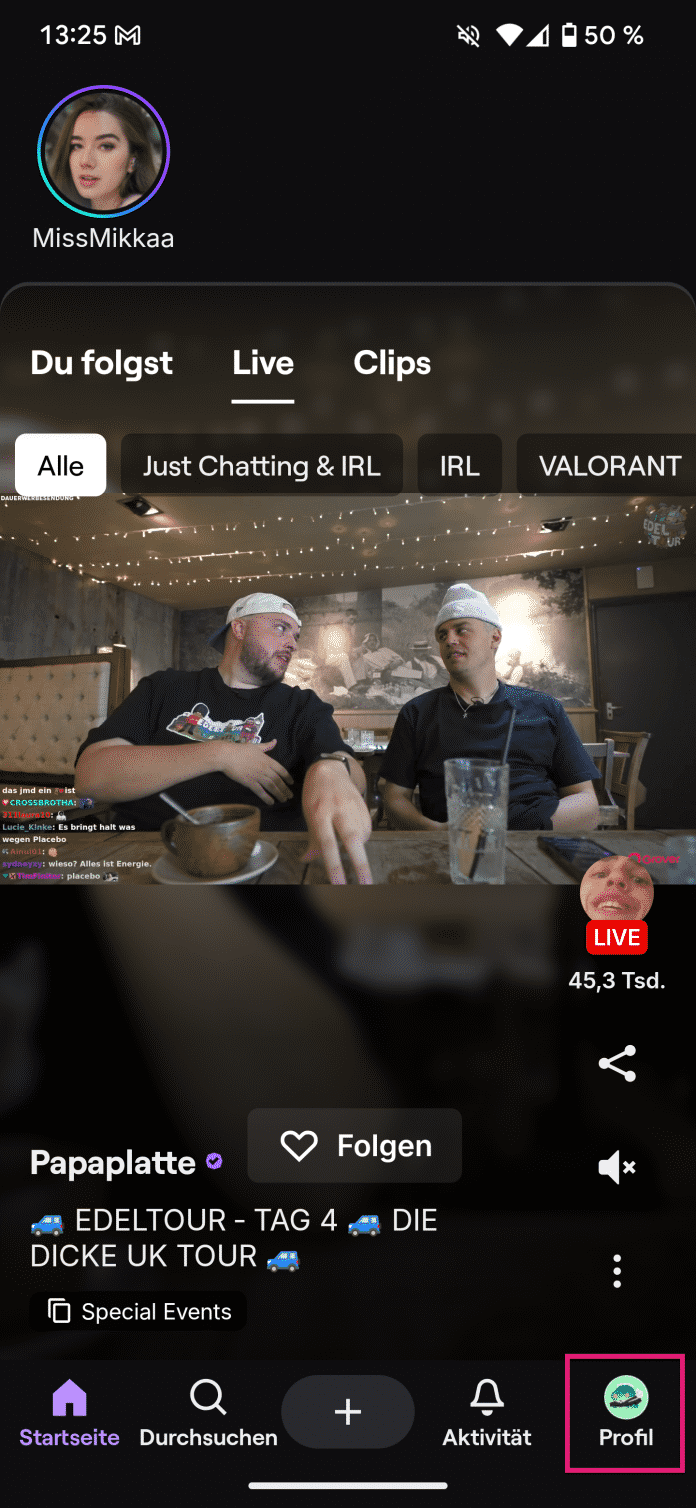 - Öffnen Sie die Twitch-App und tippen Sie unten rechts auf Ihr Profilbild.