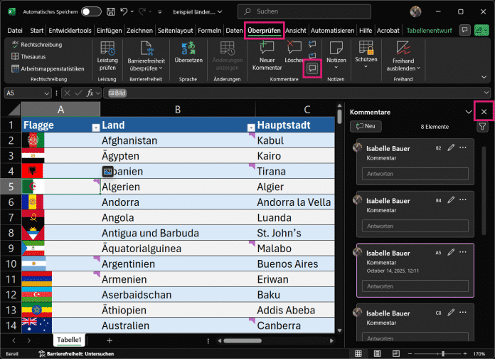 Kurzanleitung: Kommentare und Hinweise in Excel ausblenden