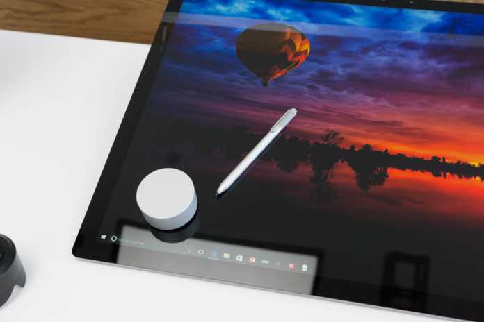 Zum Lieferumfang des Surface Studio gehören der von Surface Pro und Book bekannte Surface Pen sowie eine Bluetooth-Tastatur und ein -Maus. Die (unbeleuchtete) Tastatur hat einen alltagstauglichen Hub und einen gut spürbaren Druckpunkt; an Tastaturen mit mechanischen Tasten kommt sie freilich nicht heran. Ähnliches gilt für die optische Maus, die nur zwei Tasten und ein Scrollrad bietet. Das neue Eingabegerät Dial muss separat dazugekauft werden.