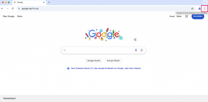 - Klicken Sie rechts oben auf das Symbol mit den drei Punkten ("Google Chrome anpassen und verwalten").