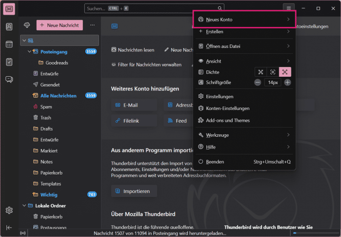 - Klicken Sie in Thunderbird rechts oben auf das MenĂĽ-Symbol.