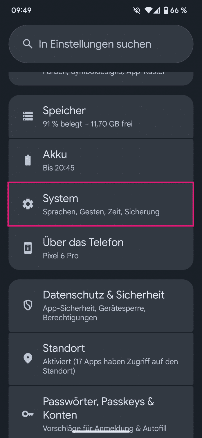 - Gehen Sie als Nächstes auf "System".