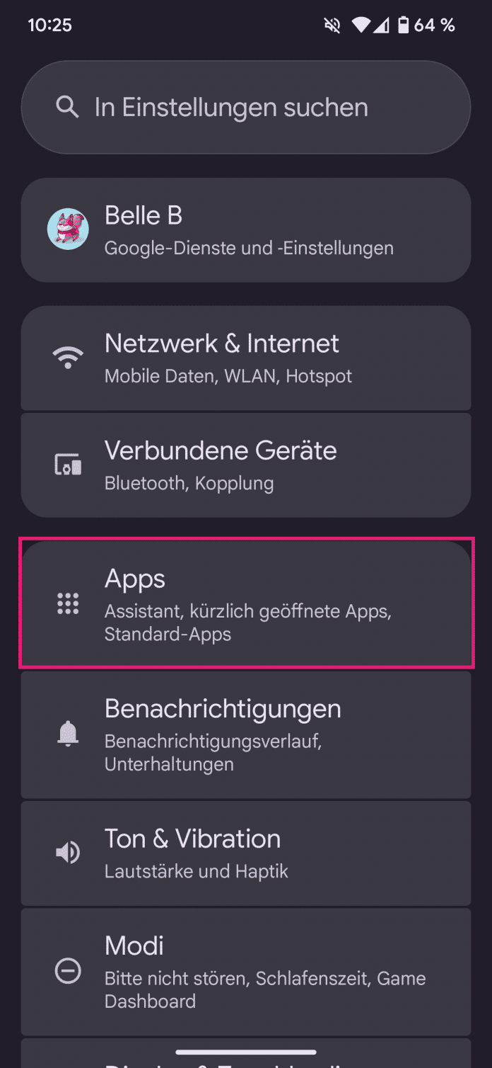 - Ă–ffnen Sie Ihre Smartphone-Einstellungen und tippen Sie dort auf "Apps".