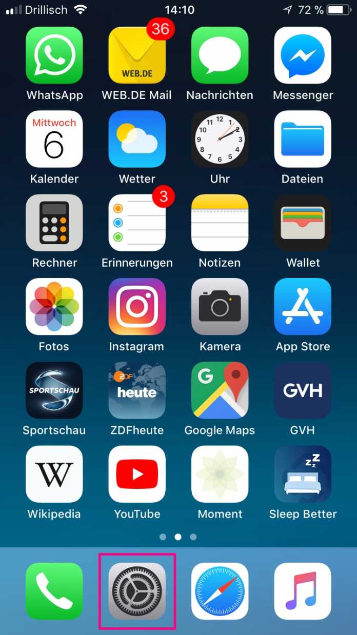 - Ă–ffnen Sie die iPhone-Einstellungen.