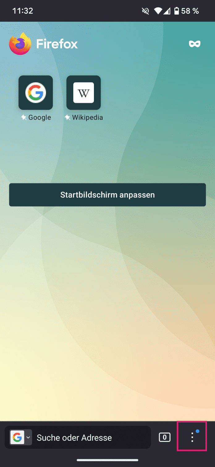 - Tippen Sie in der Firefox-App auf das Drei-Punkt-Menü und wählen Sie dann "Einstellungen" aus.