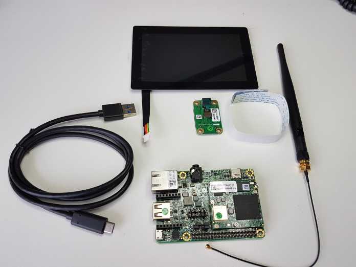 Kürzlich kam das speziell dafür gestrickte Starter-Kit Pico-Pi-IMX7 des Anbieters TechNexion ins Haus getrudelt. Es besteht aus einem Board mit einem ARM-Cortex A7 (NXP i.MX7D mit 1 GHz), 512 MByte RAM, 4 GByte eMMC, WLAN (2,4 und 5 GHz), BLE, Gigabit-Ethernet, Audio-Ausgang, USB-Ports und einer zum Raspberry Pi kompatiblen Steckerleiste mit GPIOs. Zum Kit gehören ferner ein 5-Zoll-Touchdisplay mit einer Auflösung von 800 × 480 (für den DSI-Anschluss auf dem Board), eine Antenne sowie eine 5-MP-Kamera (für den CSI-Anschluss). Google stellt für dieses Kit – neben anderen – ein dediziertes Image zum Flashen in den eMMC bereit.