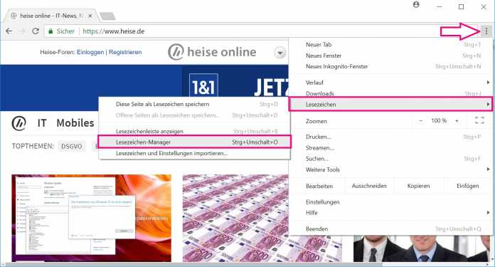 Google Chrome: Lesezeichen exportieren - so geht's
