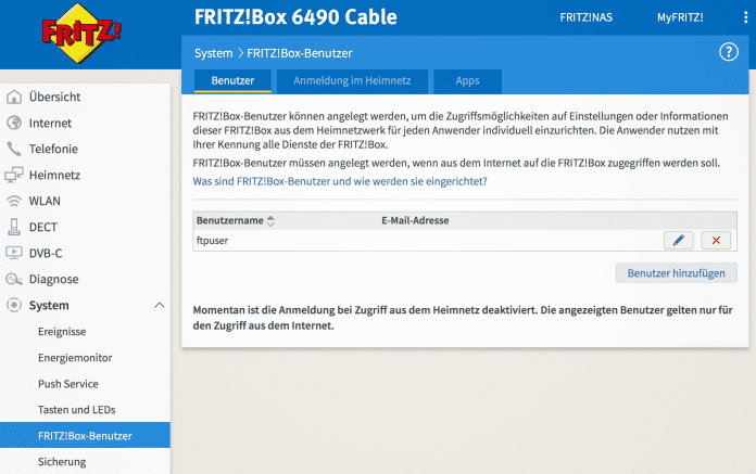 Nun kommt der knifflige Teil, die eigentliche VPN-Einrichtung. Dazu empfiehlt es sich, zunächst einen (oder mehrere) FritzBox-Benutzer anzulegen. Achtung: Der ist nicht der gleiche wie der MyFritz-Benutzer. Mit dem können Sie dann ganz einfach VPN nutzen.