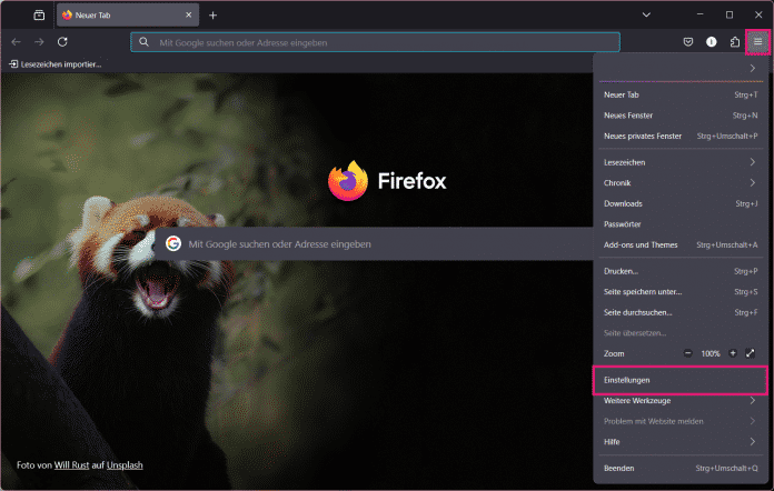 Kurzanleitung: Suchmaschine in Firefox am Desktop ändern