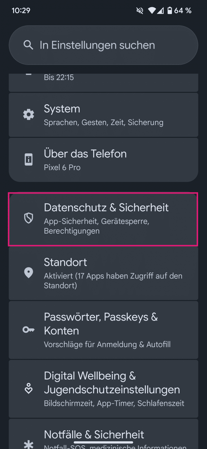 - Wählen Sie dann die Option "Datenschutz & Sicherheit" oder einfach nur "Sicherheit" aus.
