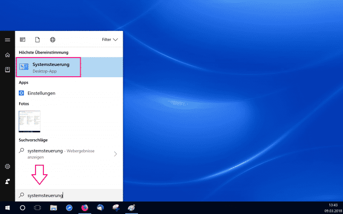 - Ă–ffnen Sie das StartmenĂĽ und suchen Sie nach "Systemsteuerung".
