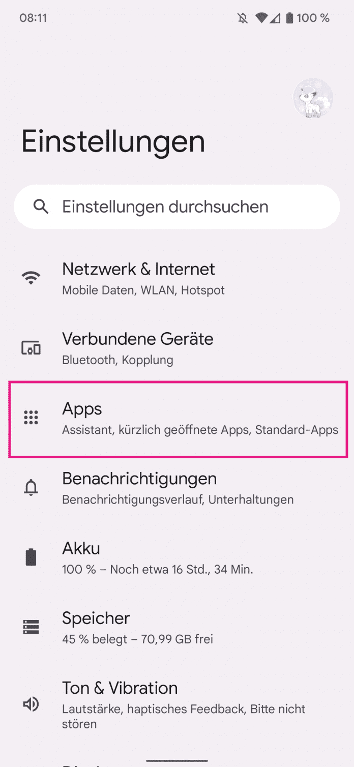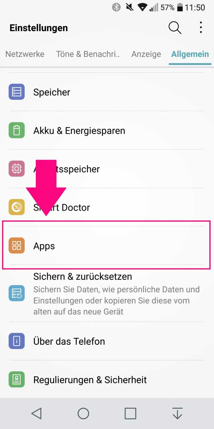 - Ă–ffnen Sie in den Einstellungen Ihres Smartphones die Option "Apps".