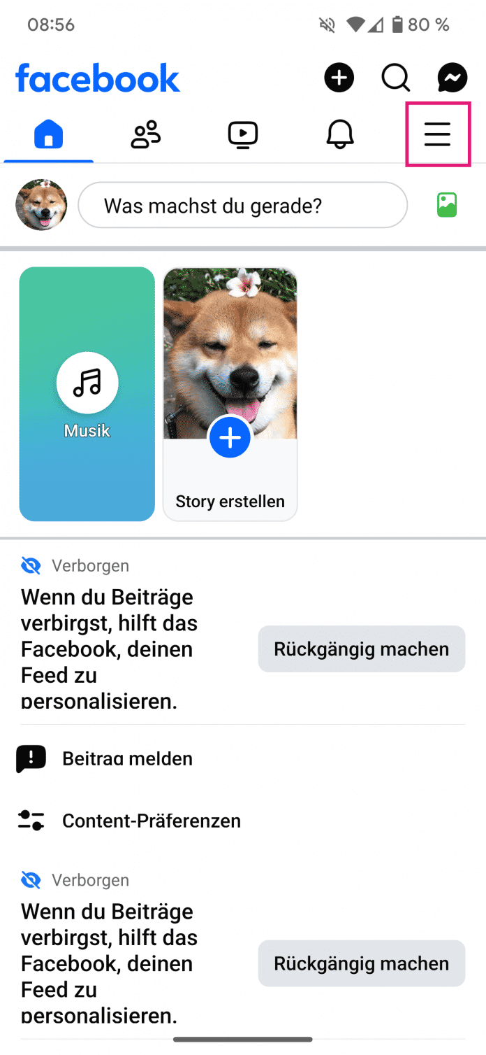 - In der Facebook-App tippen Sie auf das Drei-Strich-Menü oben rechts und wählen dann nacheinander "Einstellungen und Privatsphäre" und "Einstellungen" an.
