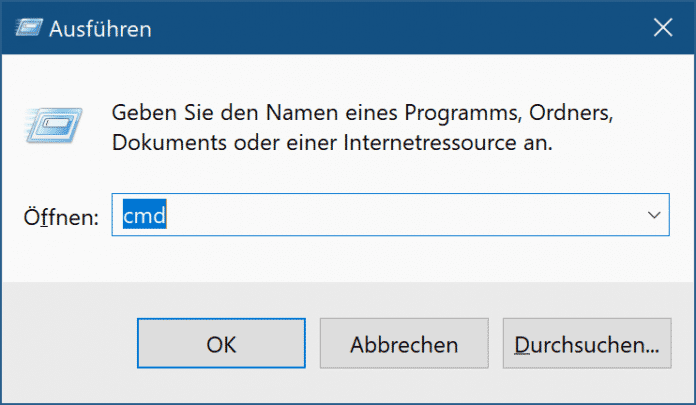 - DrĂĽcken Sie [Windows] + [R] und geben Sie cmd ein. Halten Sie nun [Strg] + [Shift] und drĂĽcken Sie [Enter], um die Eingabeaufforderung als Administrator zu starten.