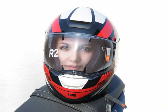 Der R2 dämpft Windgeräusche sehr effektiv und ist völlig zugfrei. Das Visier lässt sich in sechs Raststellungen fixieren und absolut dicht verschließen. Um es zu wieder öffnen, genügt ein Daumen an einem der beiden Fingertabs unten am Visier. Selbst mit dicken Handschuhen lassen sie sich bedienen. Ein Beschlagen des Pinlock-Visiers war selbst bei Temperaturen knapp über dem Gefrierpunkt nicht festzustellen. Umgekehrt sorgt die Belüftung auch bei weit über 30 Grad Hitze für einen kühlen Kopf.