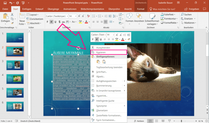 - Fügen Sie Ihren Text nun in Ihre PowerPoint-Präsentation ein.