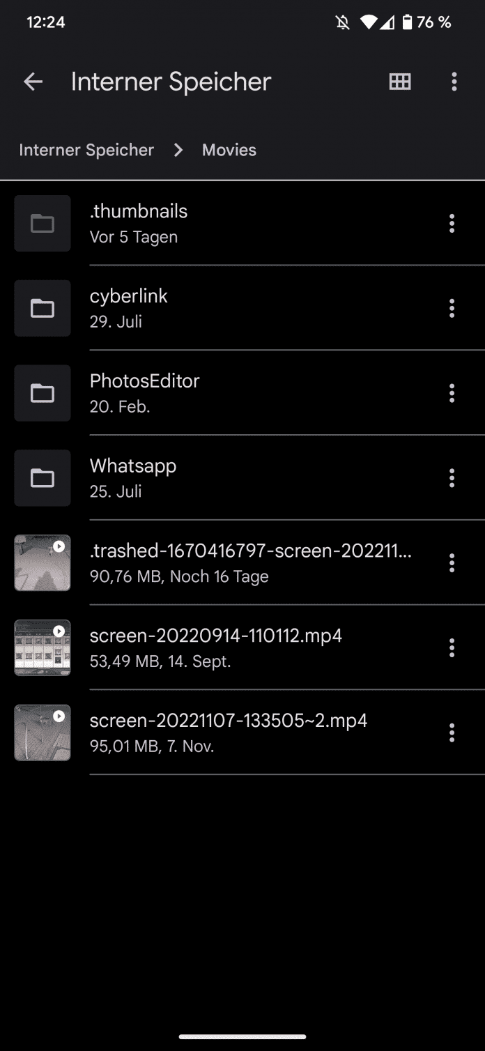 - Ă–ffnen Sie den Dateimanager Ihres Android-Smartphones. Dort tippen Sie dann oben rechts auf das MenĂĽ mit den drei Punkten.