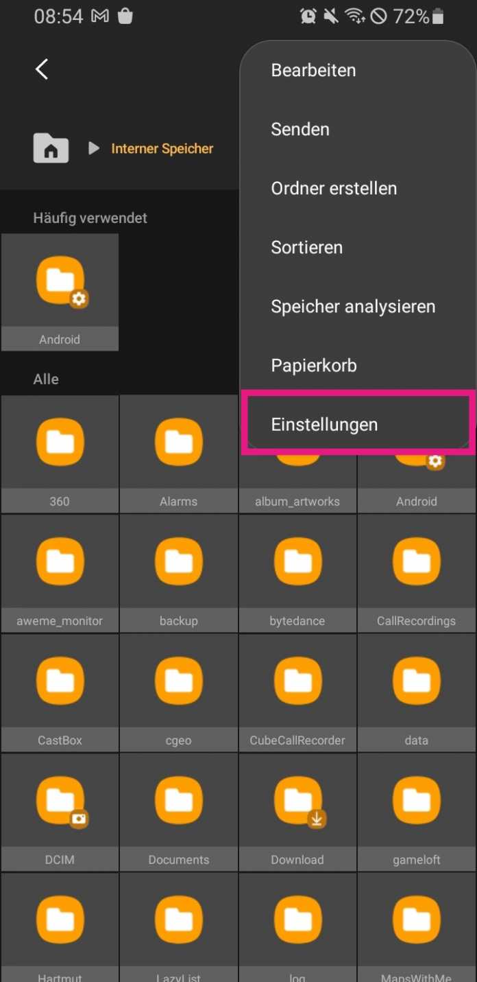 Standardmäßig werden Systemdateien und andere Ordner, zum Beispiel diese, die Sie verstecken, in Ihrem Dateimanager angezeigt. Bei älteren Android-Versionen, 10 und älter, müssen Sie jedoch eine Einstellung in Ihrem Manager ändern, damit Sie solche Dateien sehen können. Folgen Sie unserer Schritt-für-Schritt-Anleitung oder schauen Sie sich die Kurzanleitung an.