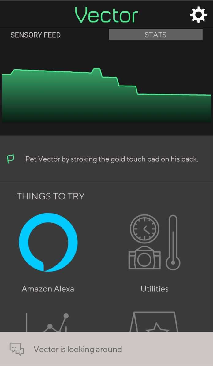 Ein langer Druck auf den Rücken schaltet den Roboter ein, der nach dem Booten seinen Kopf hebt und die Augen aufschlägt. Die Ersteinrichtung setzt die Vector Robot App für iOS (respektive die Vector Robot App für Android) voraus. Mit dem Smartphone oder Tablet stellt man eine Bluetooth-Verbindung her, um den Roboter ins WLAN (2,4 GHz) zu hieven, von Vector geschossene Fotos anzuschauen oder um erlernte Gesichter wieder zu löschen. Dass es ein 2,4-GHz-WLAN sein muss, begründet Anki mit weniger Stromverbrauch und größerer Reichweite als beim 5-GHz-Band.
