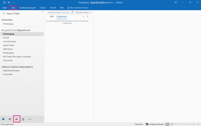 - Klicken Sie auf die Registerkarte "Start" und wählen Sie unten links das "Kontakte"-Icon aus.