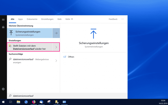 - Suchen Sie im Startmenü nach "Dateiversionsverlauf" und wählen Sie die Option "Stellt Dateien mit dem Dateiversionsverlauf wieder her" aus.