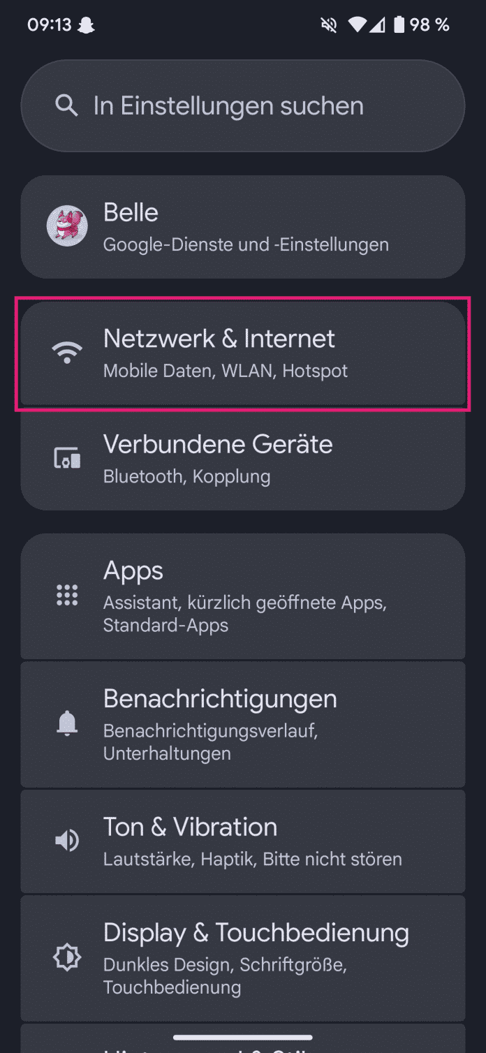 - Tippen Sie dort auf "Netzwerk & Internet" oder "Verbindungen".