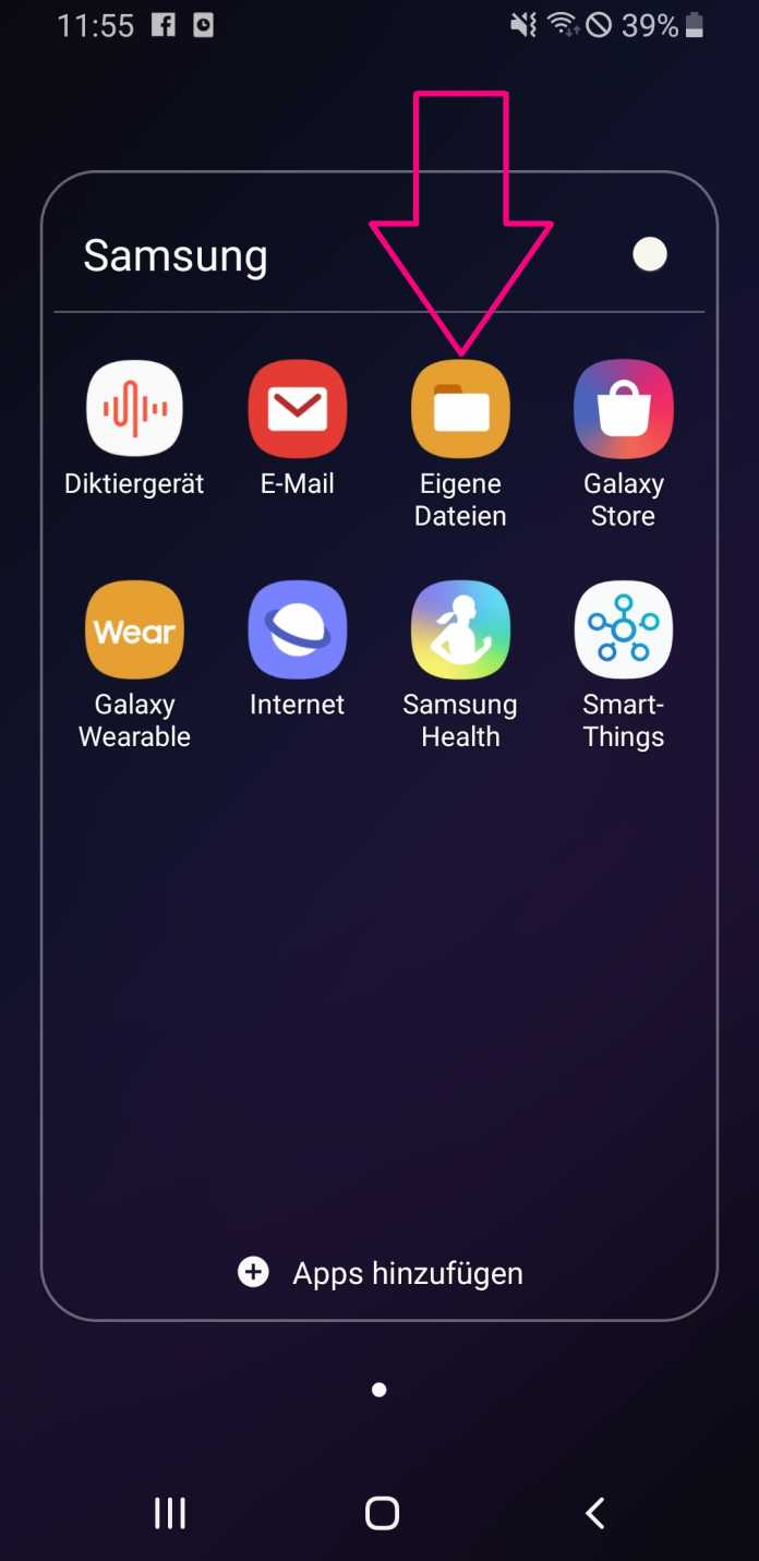 - Laden Sie ggf. die ZIP-Datei aus Ihrem E-Mail-Posteingang herunter und öffnen Sie anschließend die "Eigene Dateien"-App Ihres Smartphones.