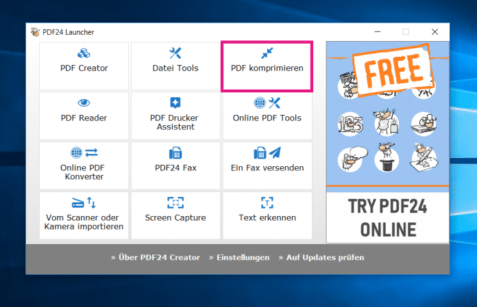 2. Öffnen Sie PDF24 Creator und klicken Sie auf "PDF komprimieren".