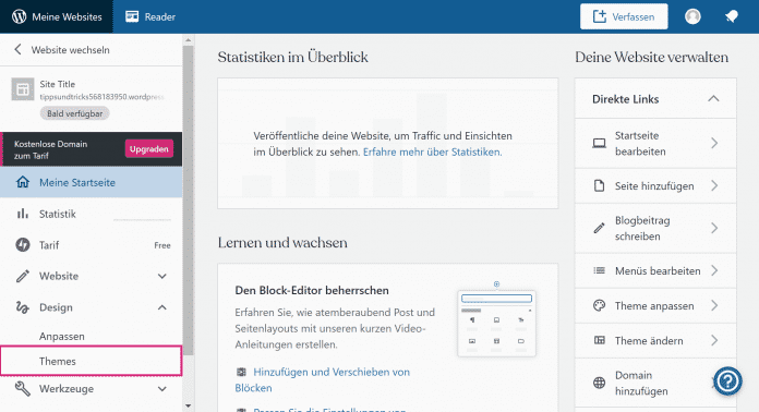 - Klicken Sie in WordPress links unter "Design" auf "Themes".