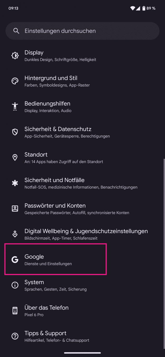 - Tippen Sie in den Smartphone-Einstellungen auf "Google".