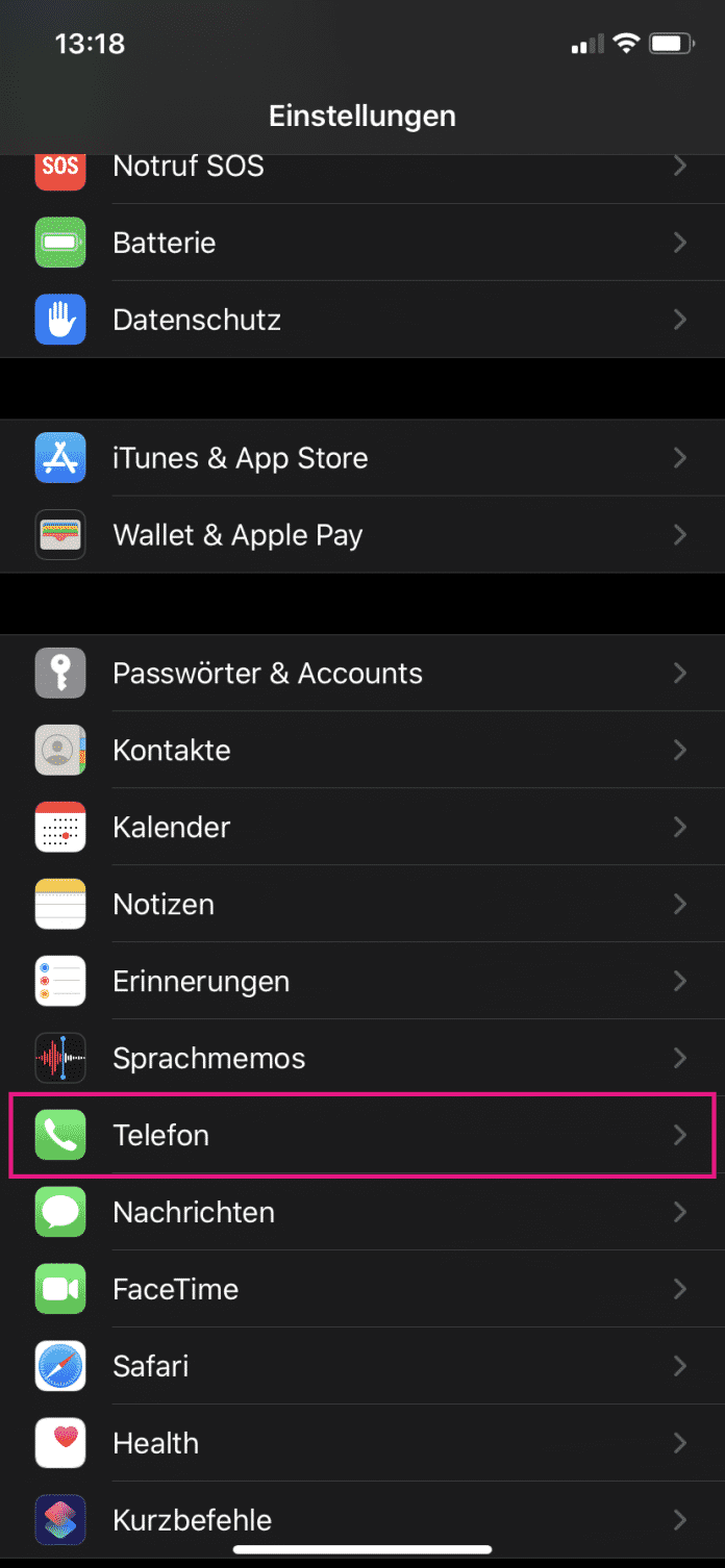 - Öffnen Sie die Einstellungen und tippen Sie auf "Telefon".