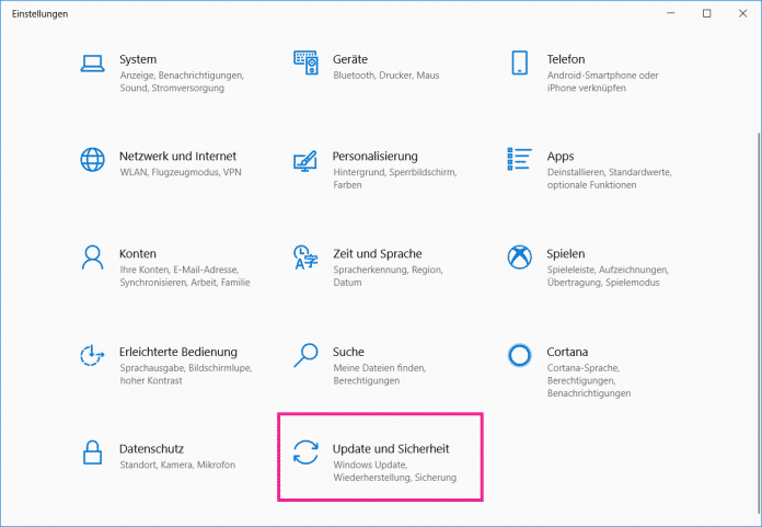 - Öffnen Sie mit [Windows] + [I] die Windows-Einstellungen und klicken Sie dort auf "Update & Sicherheit".