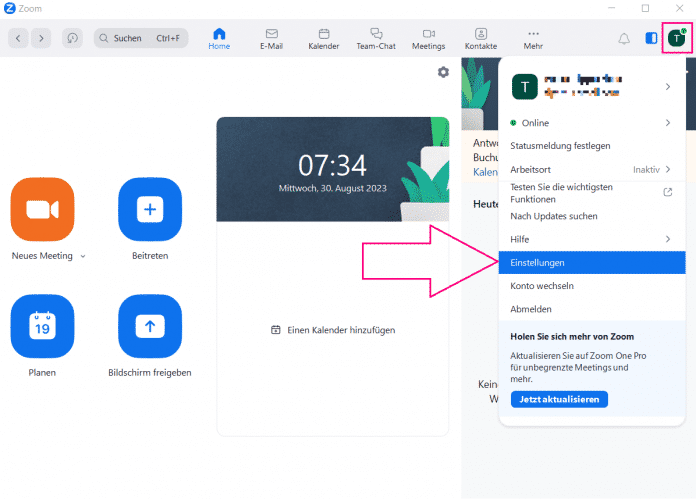 - Starten Sie Zoom und klicken Sie auf das kleine Zahnrad-Symbol oben rechts.