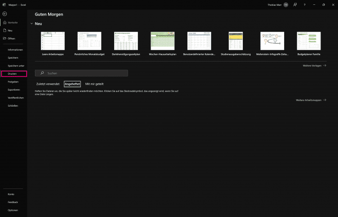 - Ă–ffnen Sie die Druckoptionen ĂĽber [Strg] + [P].