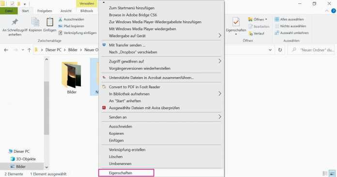 - Klicken Sie mit der rechten Maustaste auf den Ordner, für den Sie das Icon ändern möchten, und dann auf "Eigenschaften".
