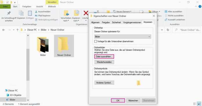 Bild innerhalb des Ordnersymbols ändern (3 Bilder)