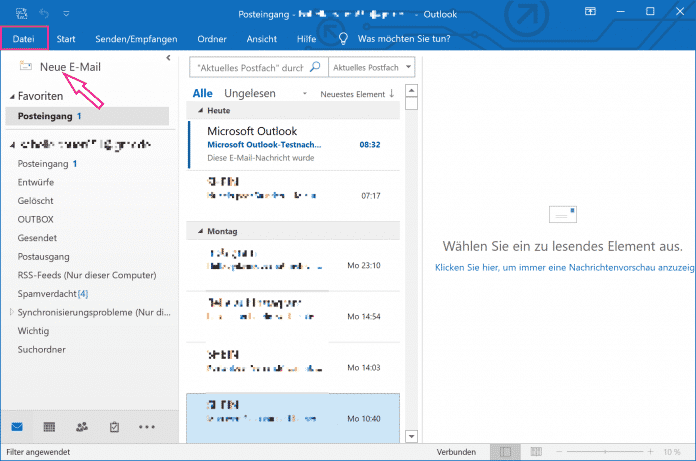 - Ă–ffnen Sie Outlook und klicken Sie oben links auf "Datei".