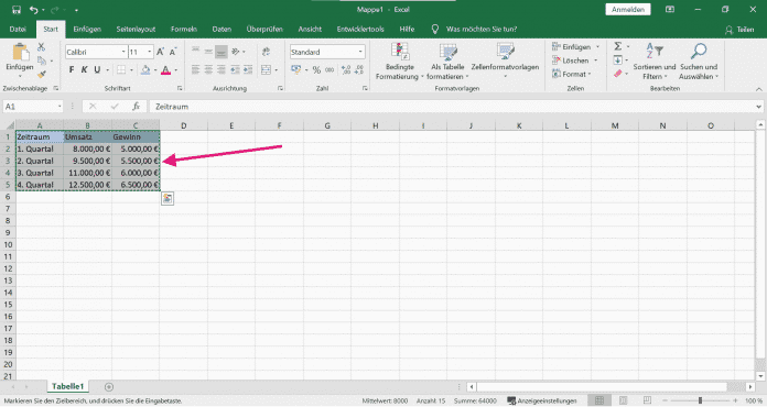 - Ă–ffnen Sie Ihre Excel-Tabelle und markieren Sie alle Daten, einschlieĂźlich Ihrer Zeilen- oder Spaltenbeschriftungen.