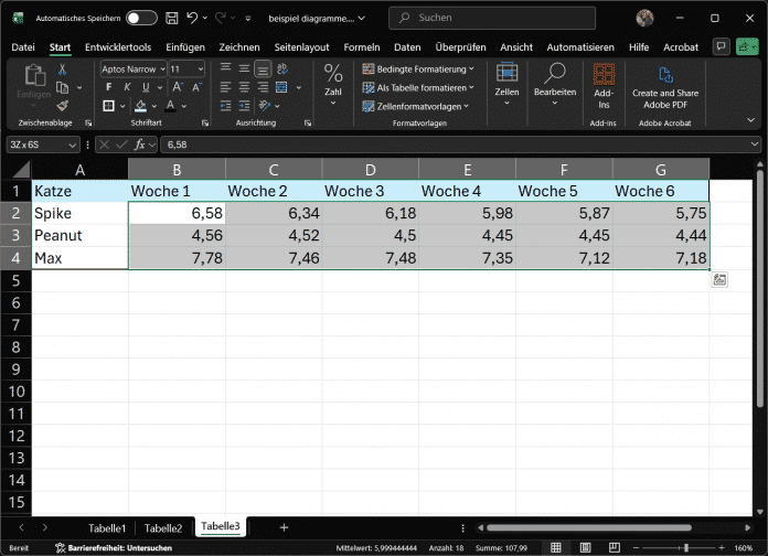 - Markieren Sie die Zellen, deren Farbe sich abhängig vom Inhalt ändern soll.