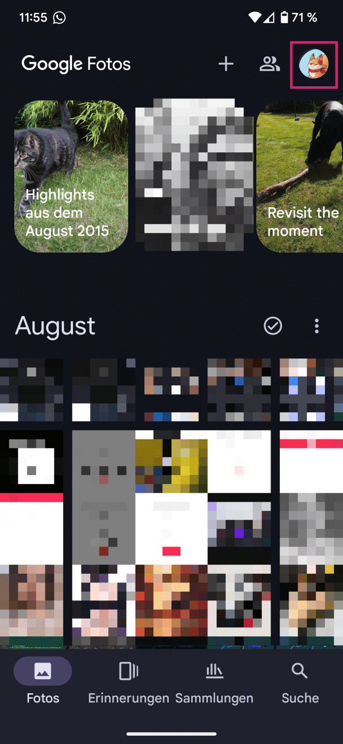 - Öffnen Sie die Google-Fotos-App und tippen Sie auf oben auf Ihr Profilbild und wählen Sie anschließend "Fotos-Einstellungen".