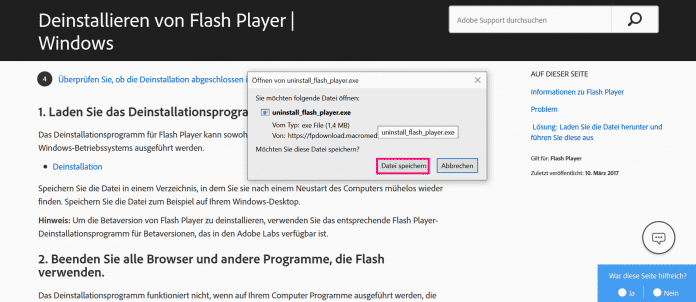 Adobe Flash Player deinstallieren (4 Bilder)