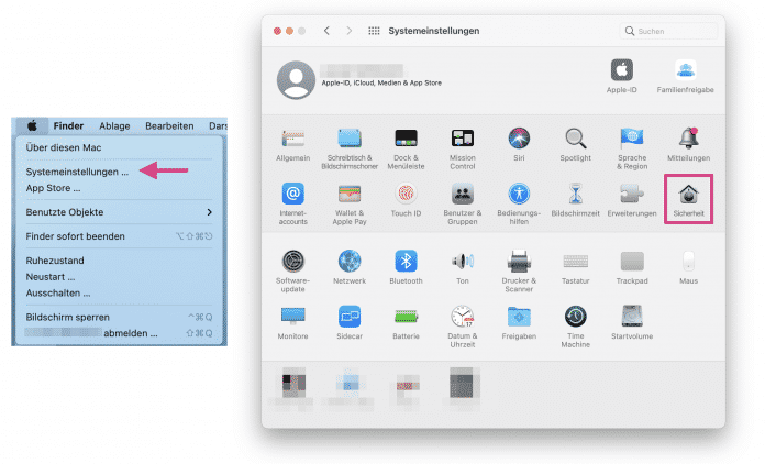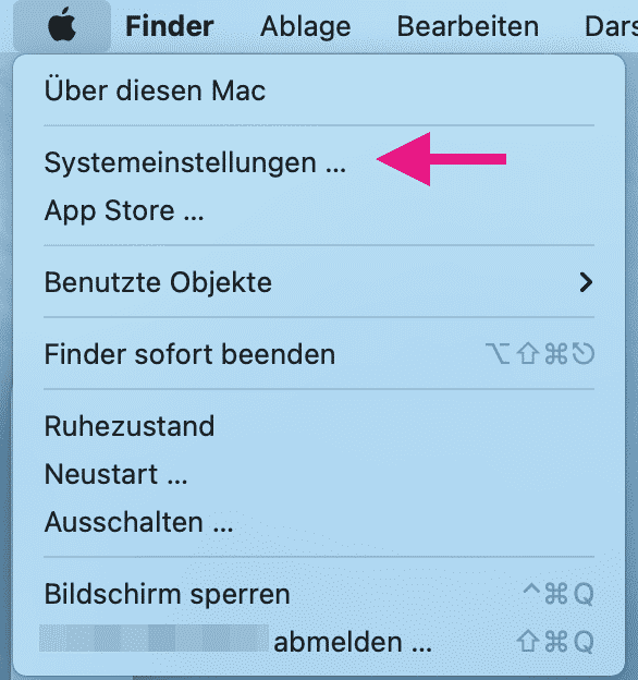 Am Mac klicken Sie auf das Apfel-Symbol und dann auf „Systemeinstellungen...“. Klicken Sie anschließend auf „Softwareupdate“.