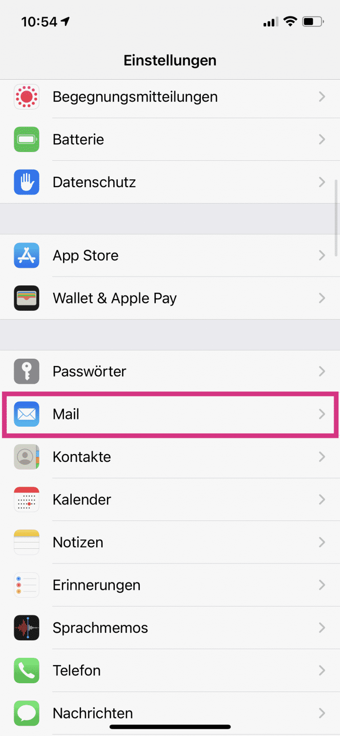 - Tippen Sie in den Einstellungen des iPhones auf „Mail“.