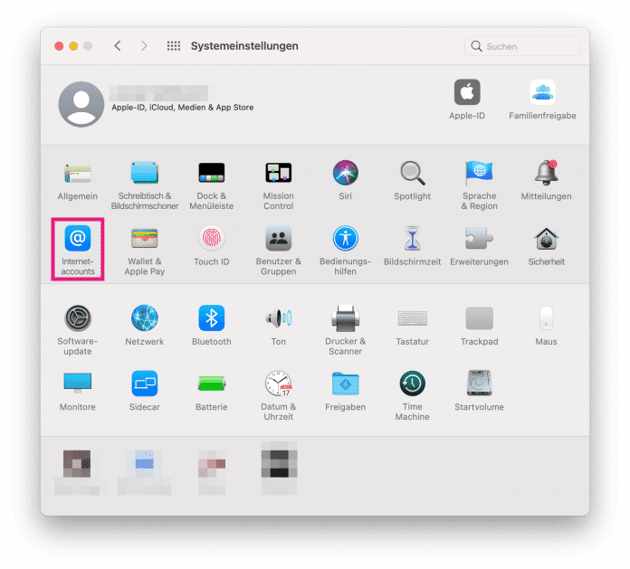 - Öffnen Sie in den Systemeinstellungen des Macs den Bereich „Internetaccounts“.